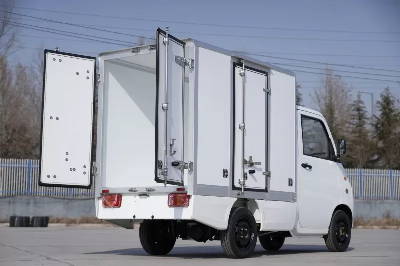 Closed cargo box, with strong sealing, can protect goods from weather conditions; The rear is equipped with a double door structure, and there is also a door opening design on the side, which facilitates multi-directional loading and unloading of goods and improves usability.