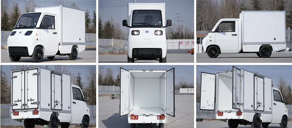 Closed cargo box, with strong sealing, can protect goods from weather conditions; The rear is equipped with a double door structure, and there is also a door opening design on the side, which facilitates multi-directional loading and unloading of goods and improves usability.