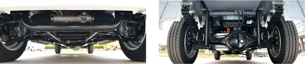 Chassis: The front suspension adopts a MacPherson suspension for comfortable driving and riding, while the rear suspension adopts a rear steel plate spring independent suspension structure for safety and reliability.