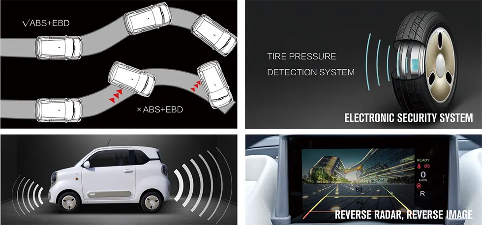 Intelligent tire pressure monitoring, front rear parking radar, automatic collision unlocking and other safety configurations provide more guarantees for driving.